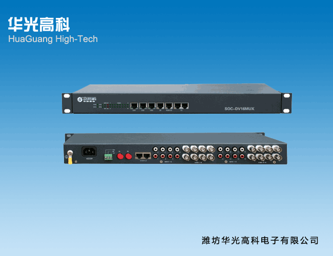 HG-DV16MUX多業(yè)務視頻光傳輸平臺是華光高科公司根據市場需求,適時開發(fā)出基于視頻傳輸的多業(yè)務光傳輸平臺,采用國際最先進的數碼視頻高速傳輸技術,將同時把16路視頻,16路音頻,2路E1接口,4路數據(RS485/RS422/RS232 /),8路開關量、8路電話(FXS/FSO/EM/載波/磁石,最多克擴60路電話)、多路10M/100M/1000M以太網等等接口在單芯或雙芯光纖上無失真、高質量傳輸。