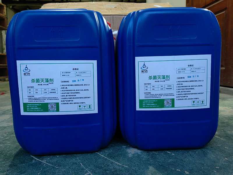 殺菌滅藻劑,具有廣譜、高效的殺菌滅藻能力,能有效地控制水中菌藻繁殖和粘泥生長,并具有良好的粘泥剝離作用和一定的分散、滲透作用,能有效地挖去藻類繁殖和粘泥增長,在不同的PH值范圍內均有很好的殺菌;同時具有一定的去油、除臭能力和緩蝕作用。